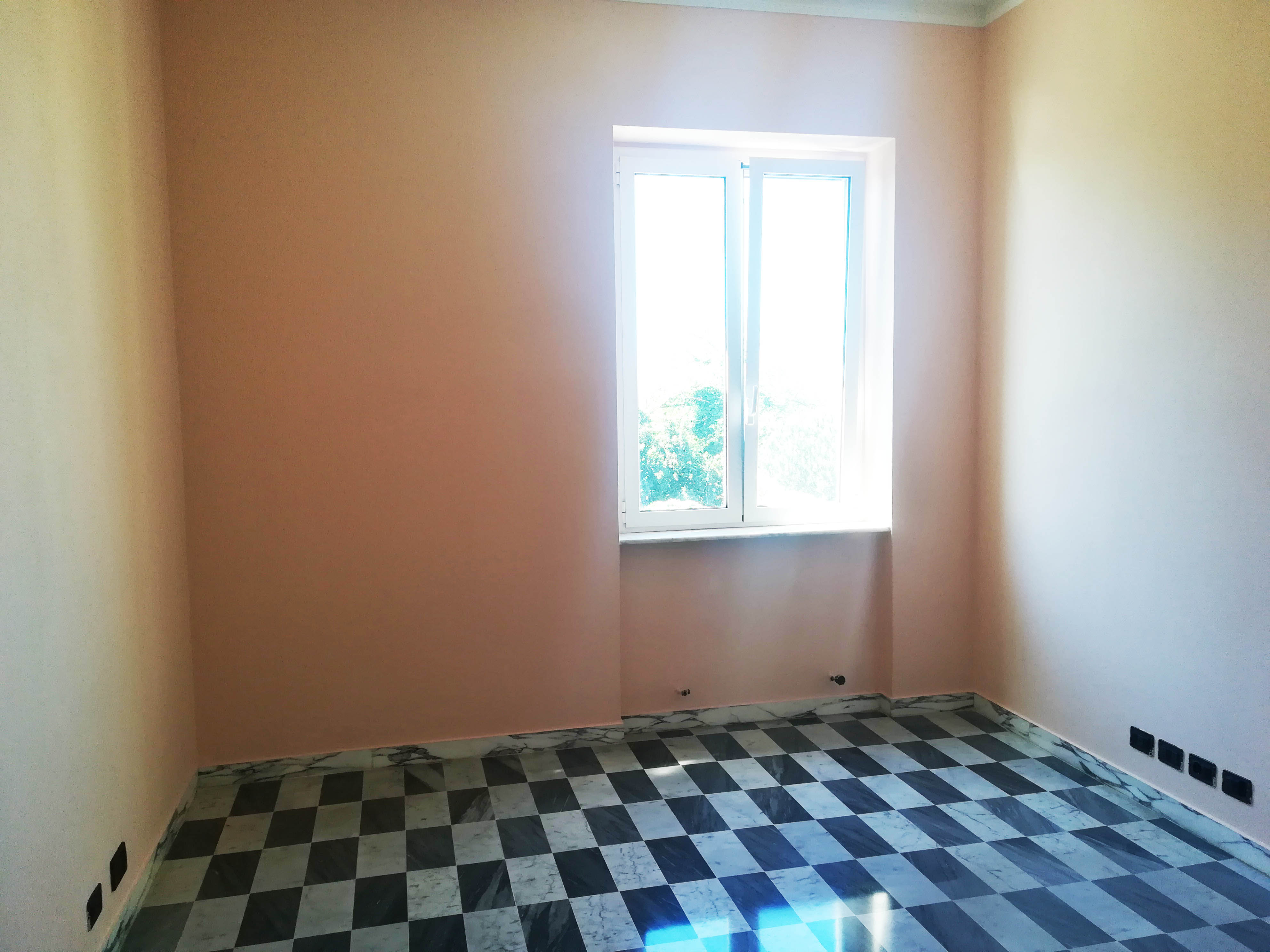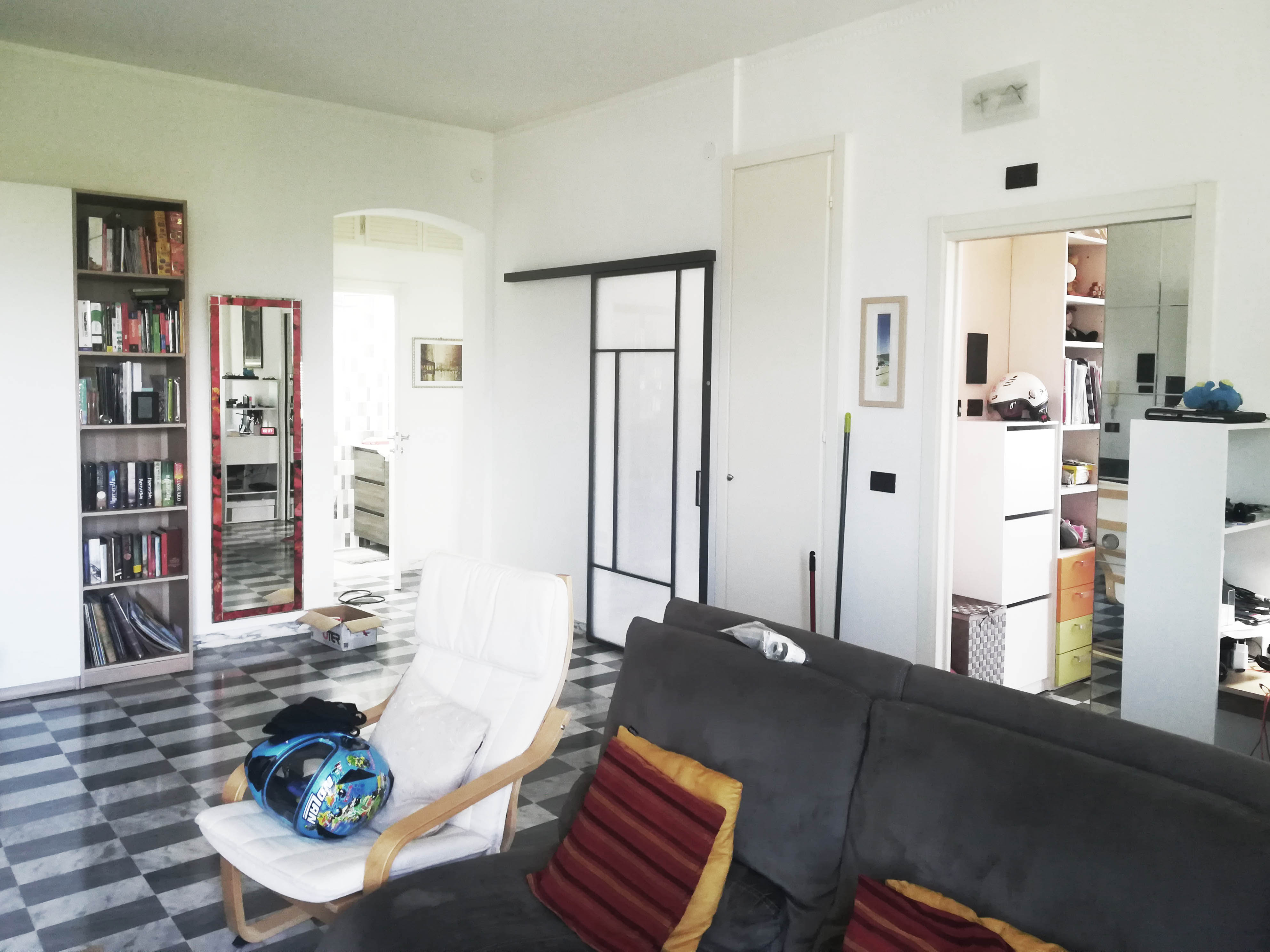 Si è scelto di preservare la caratteristica pavimentazione in marmette bianche e nere, tipica degli edifici dell’epoca.