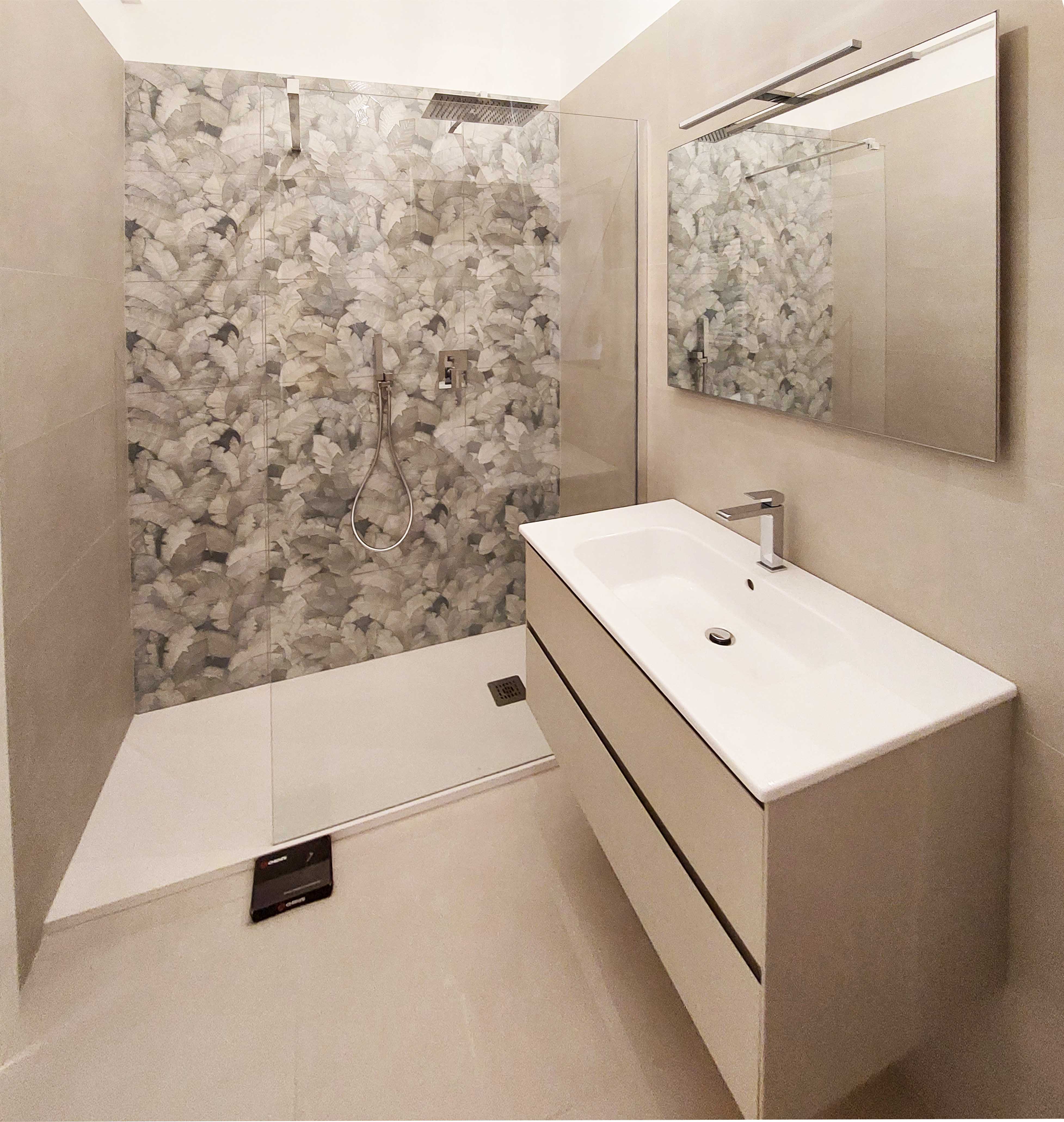 I pavimenti sono stati levigati e lucidati in modo da riportarli al loro antico splendore. Per le parete è stato scelto un colore in armonia con i colori della pavimentazione.