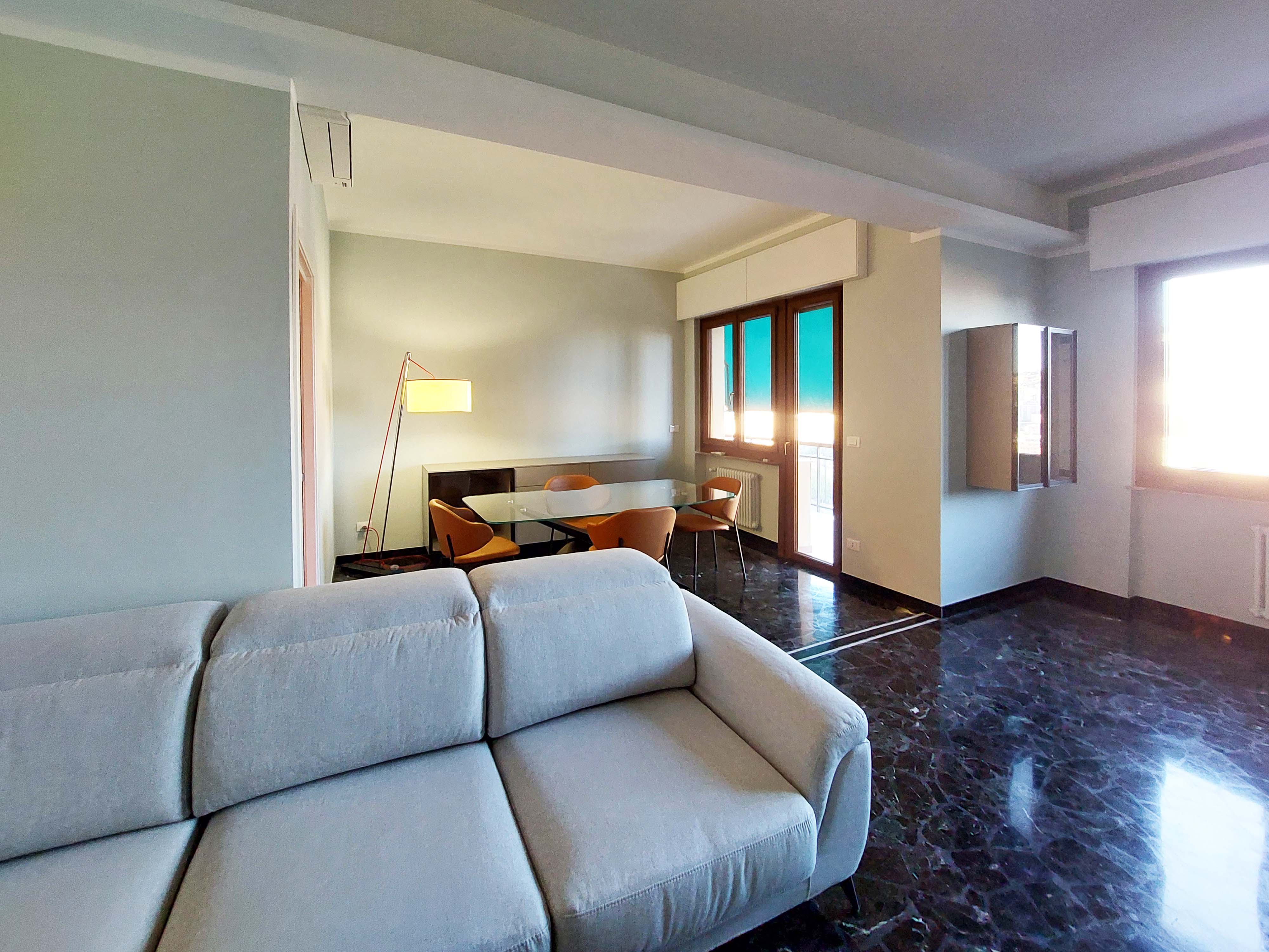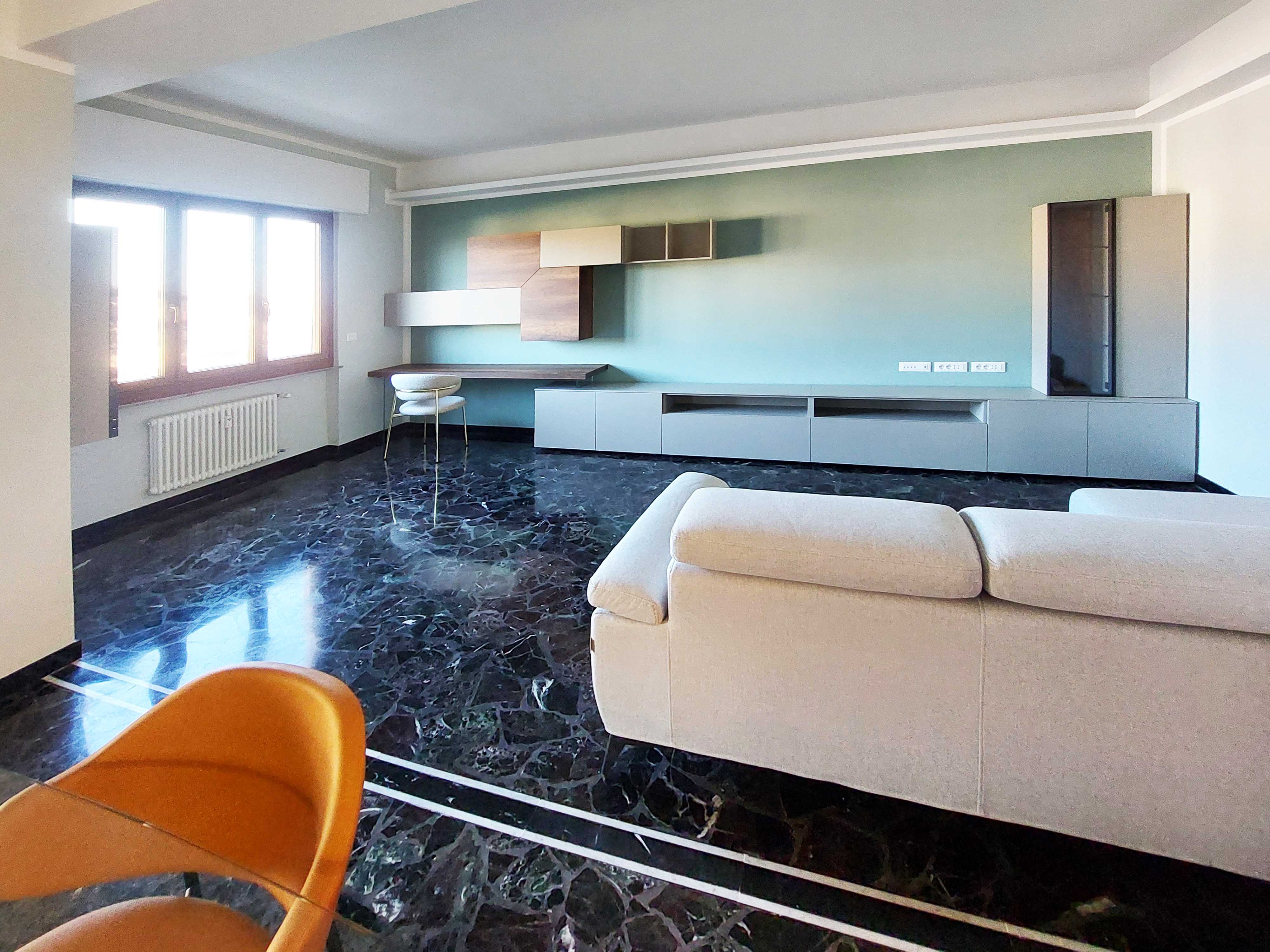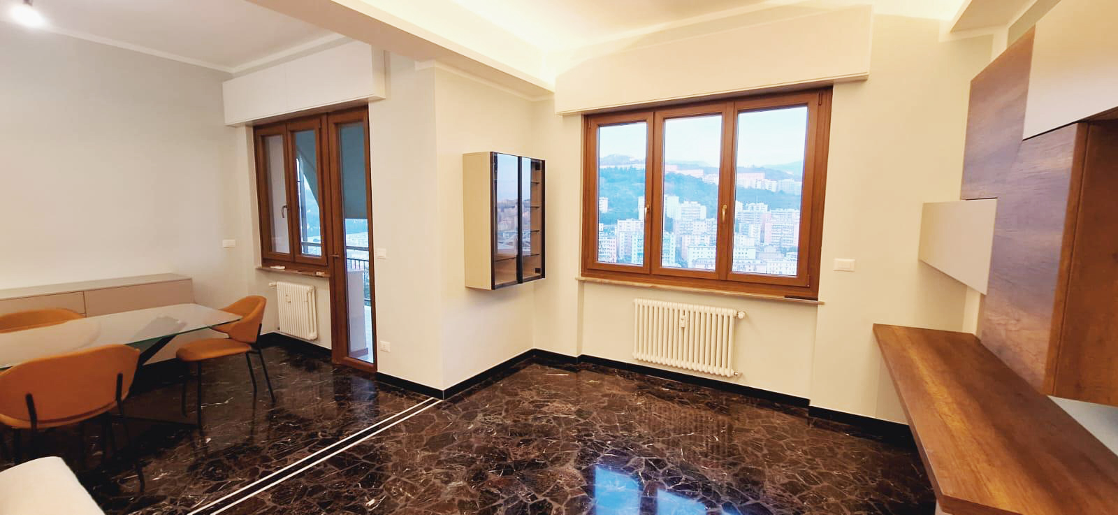 Sono stati uniti 2 vani per creare una grande sala, affacciata sulla città.