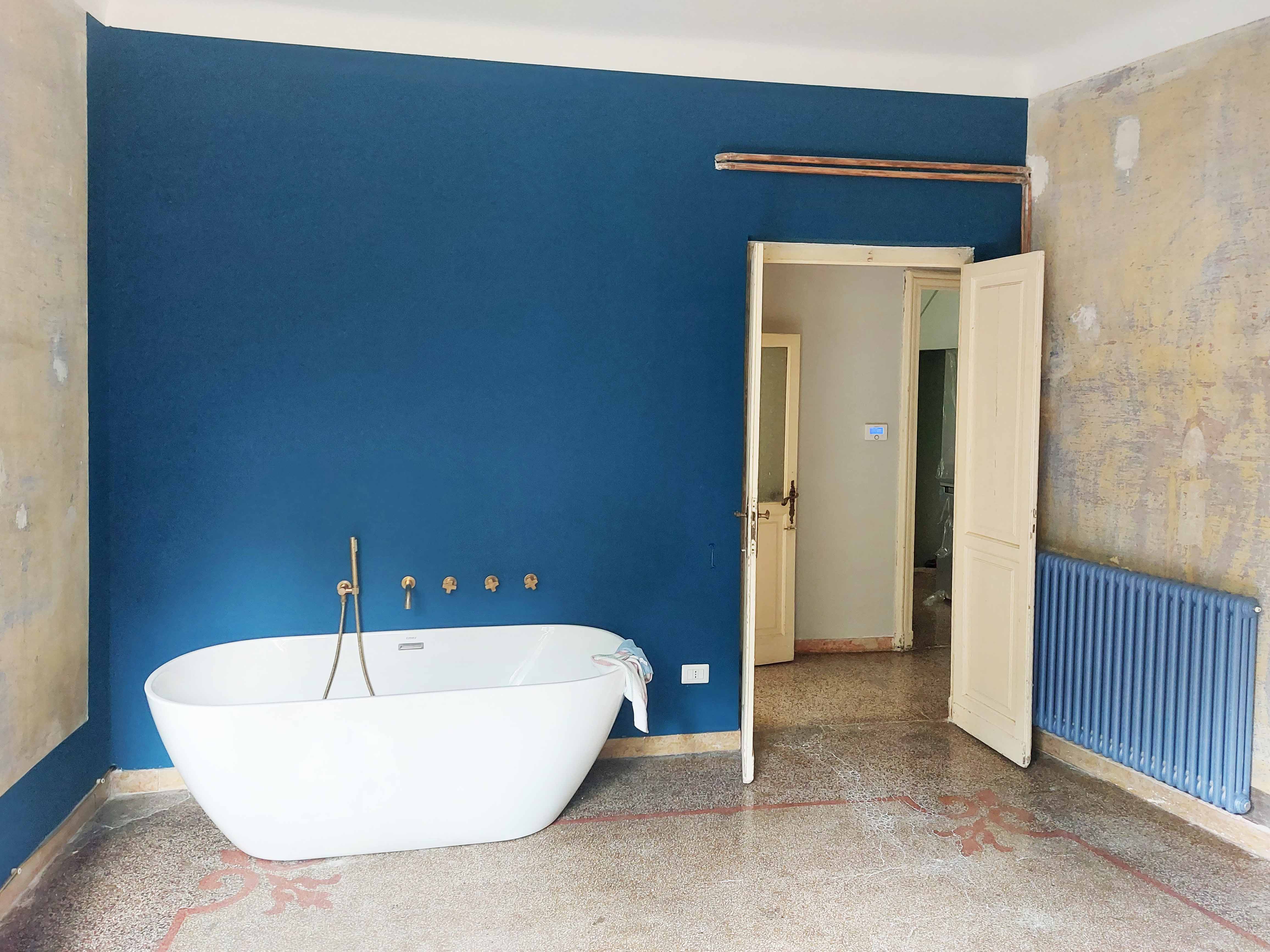 Le pareti sono state in gran parte lasciate grezze, in modo da far spiccare tutti i colori e la storia delle varie stratigrafie cromatiche che si sono alternate lungo la storia della casa.