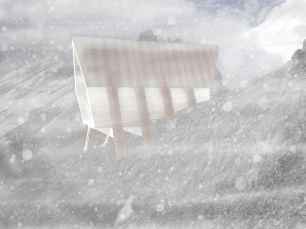 Così il bivacco sarà di poco sospeso e lascerà in estate scorrere l’acqua sotto di sé e d’inverno si staccherà dalla neve accumulata intorno.