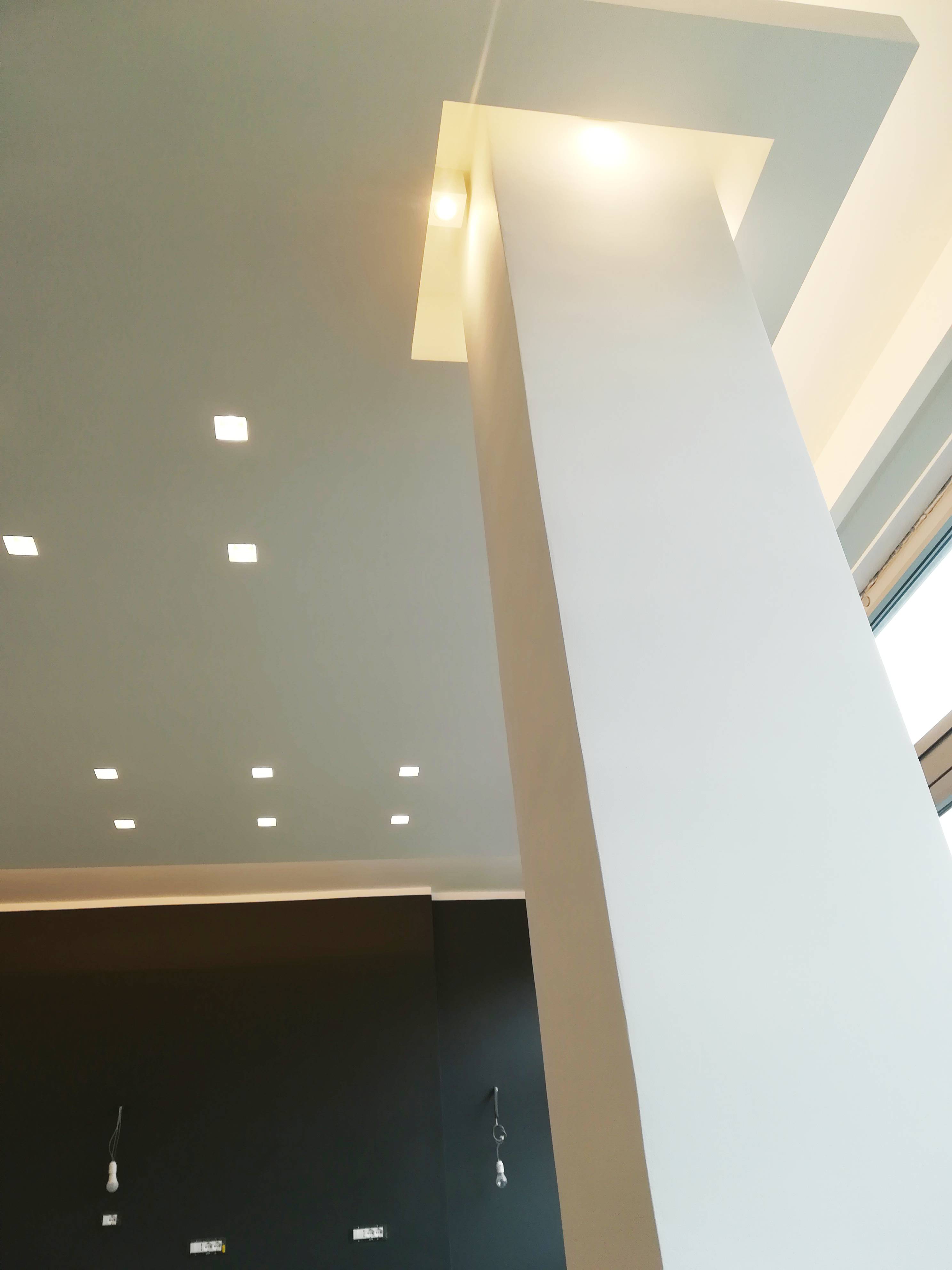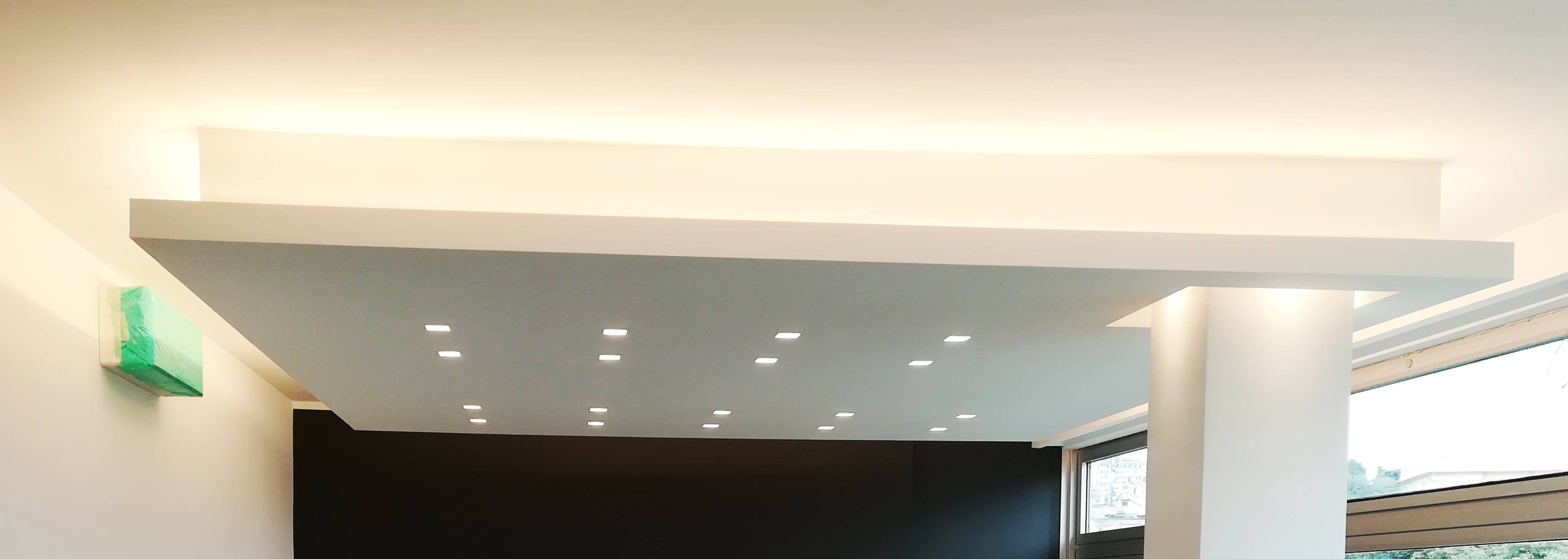 Le porte sono tutte filo muro, senza ingombranti cornici attorno, e l’illuminazione è tutta studiata in modo che non si veda mai la sorgente luminosa.