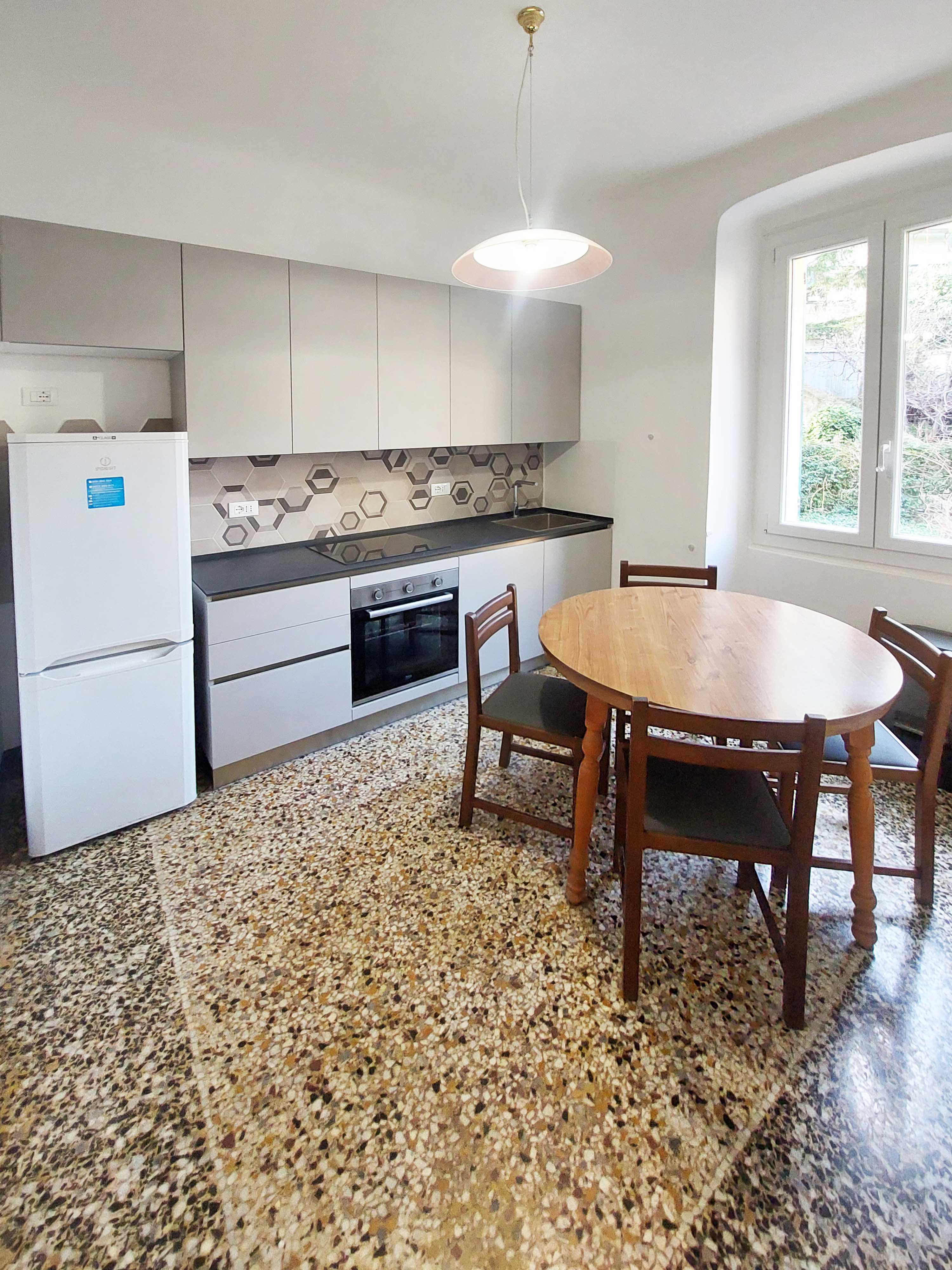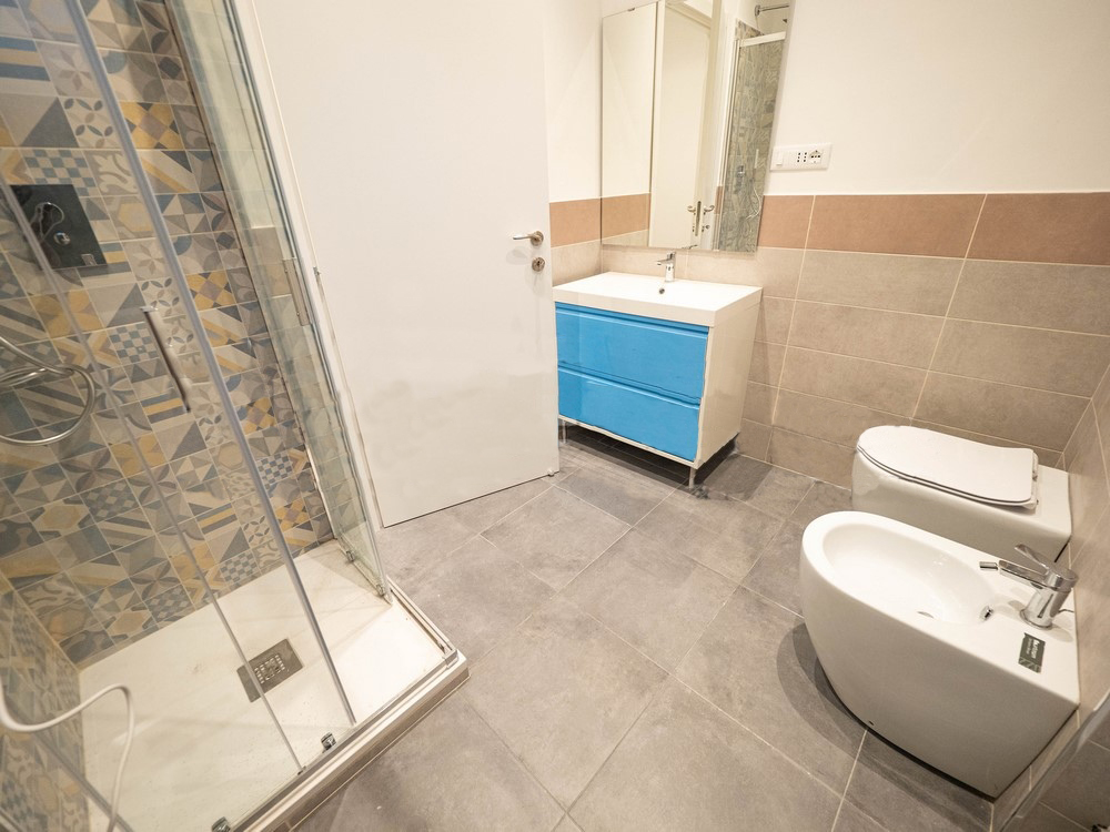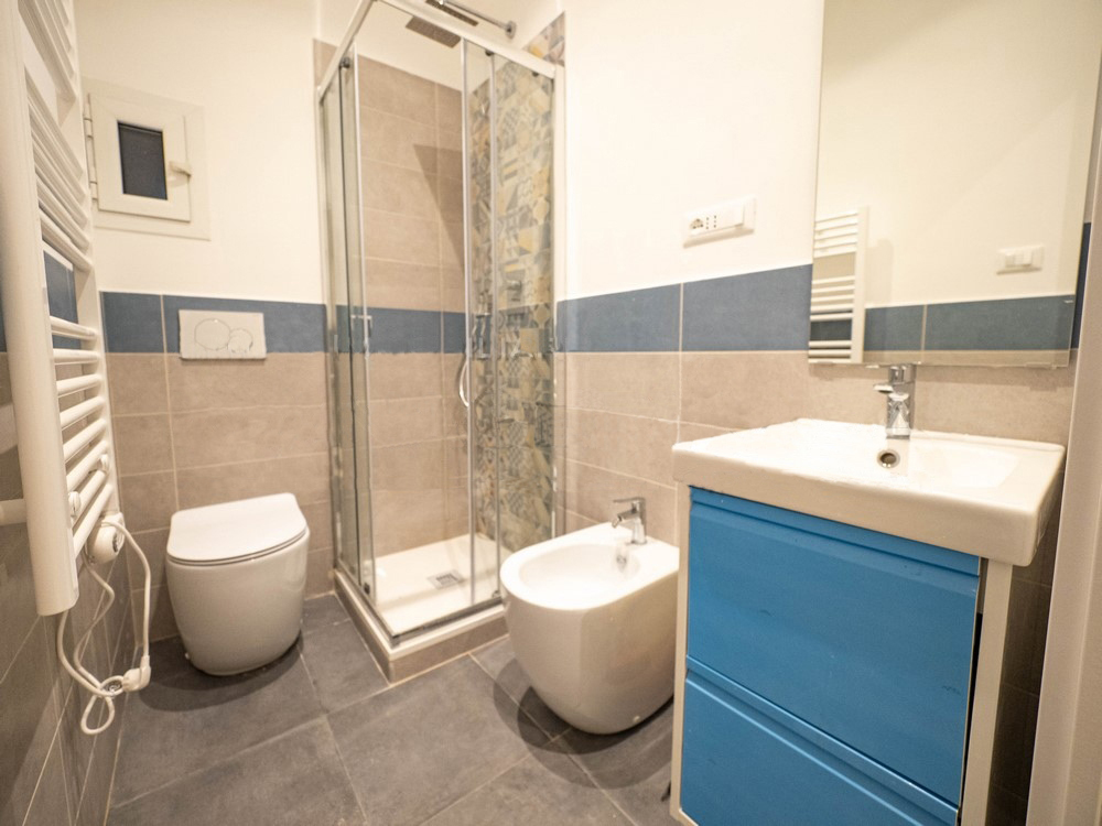 La ristrutturazione ha inoltre riguardato il completo rifacimento di tutto l’alloggio, andando a rifare integralmente bagni e cucina, e inserendo un secondo bagno e una zona lavanderia.