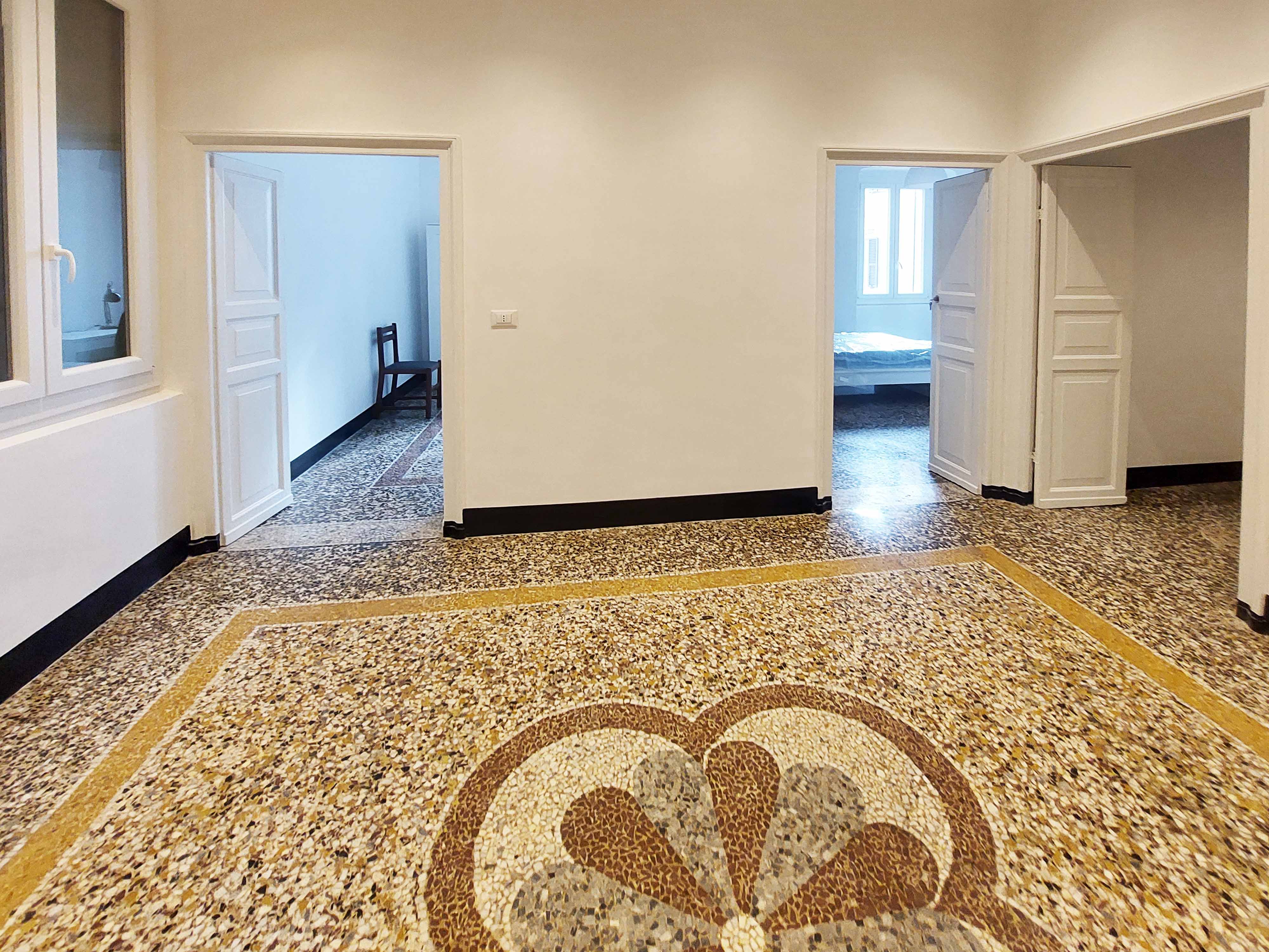 I decori delle splendide graniglie a calce originali dell’epoca della sua costruzione, caratterizzano e colorano ogni vano di questo appartamento.
