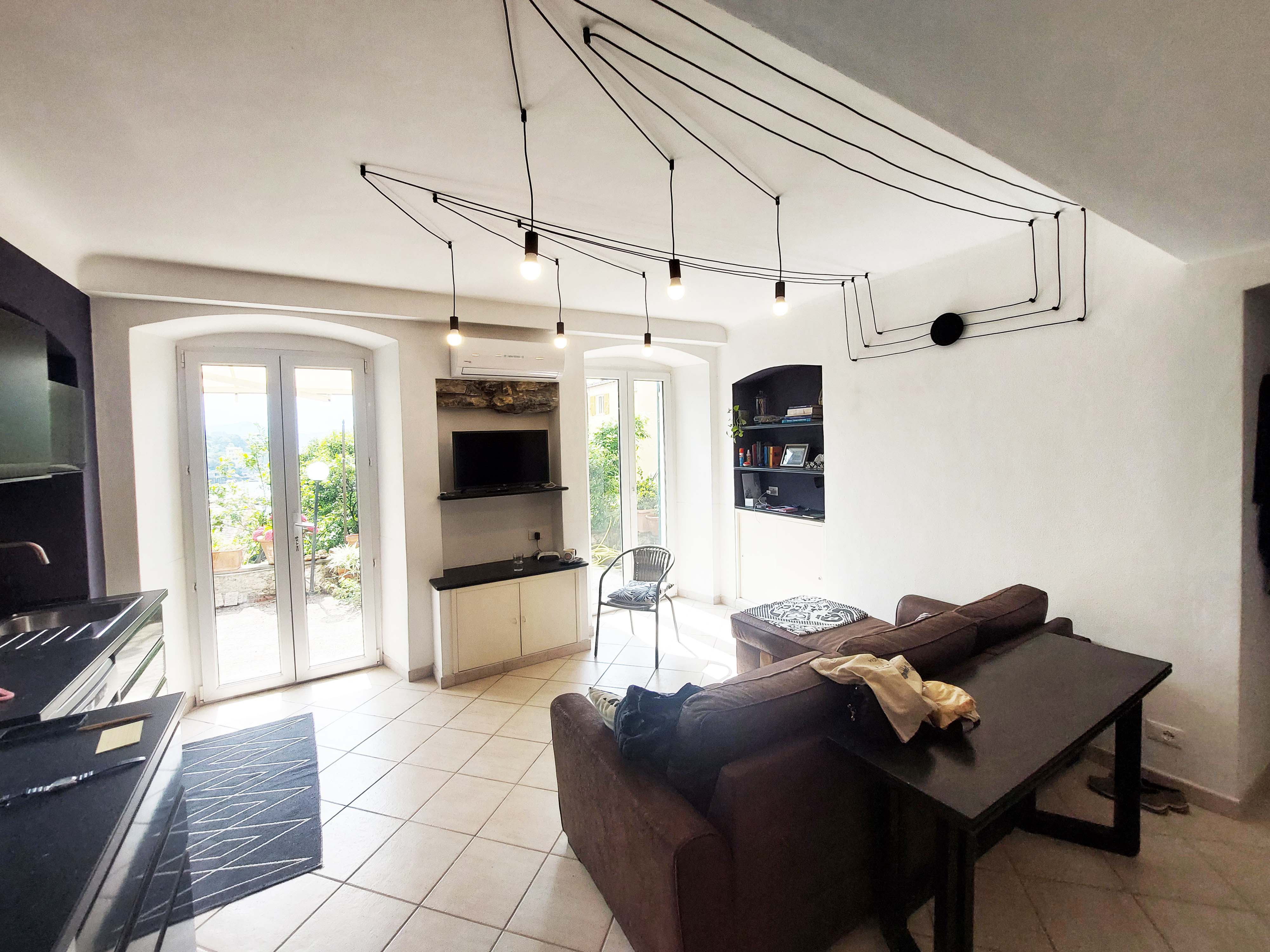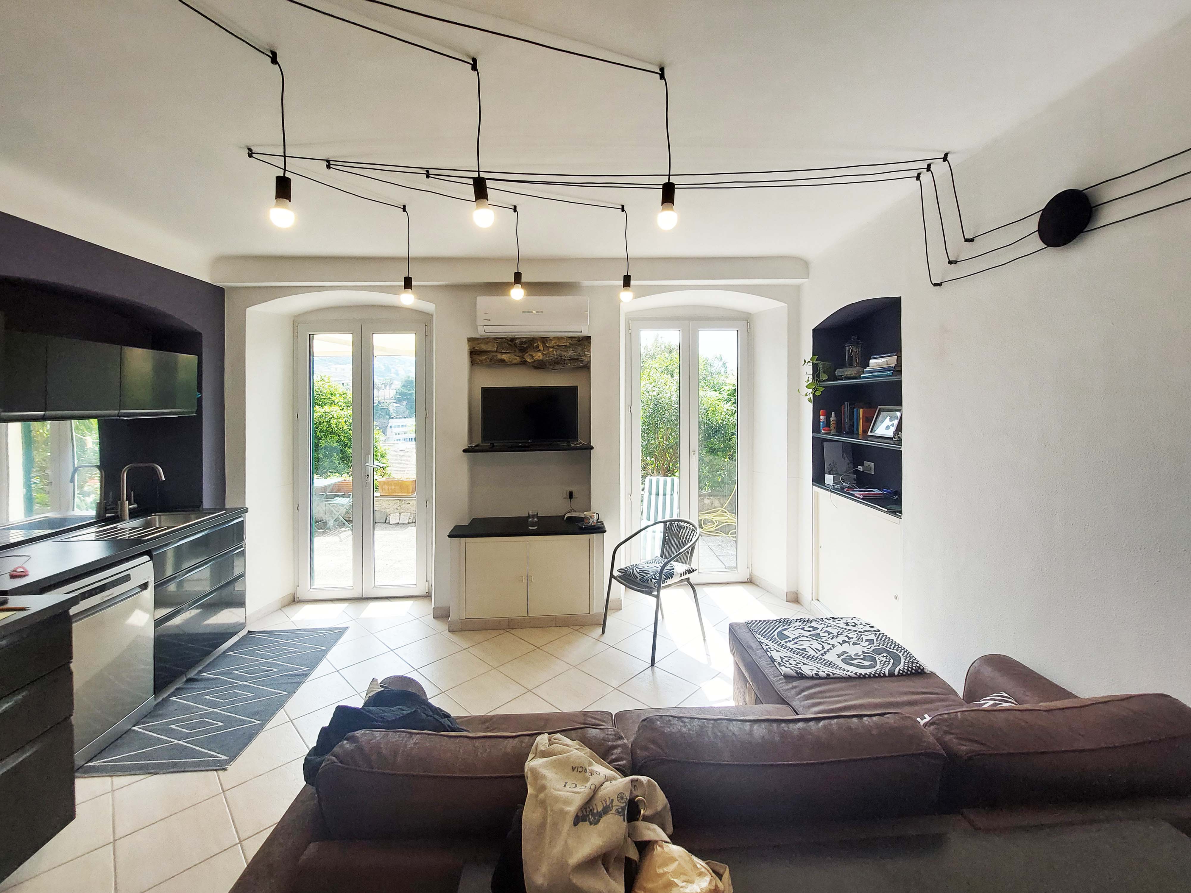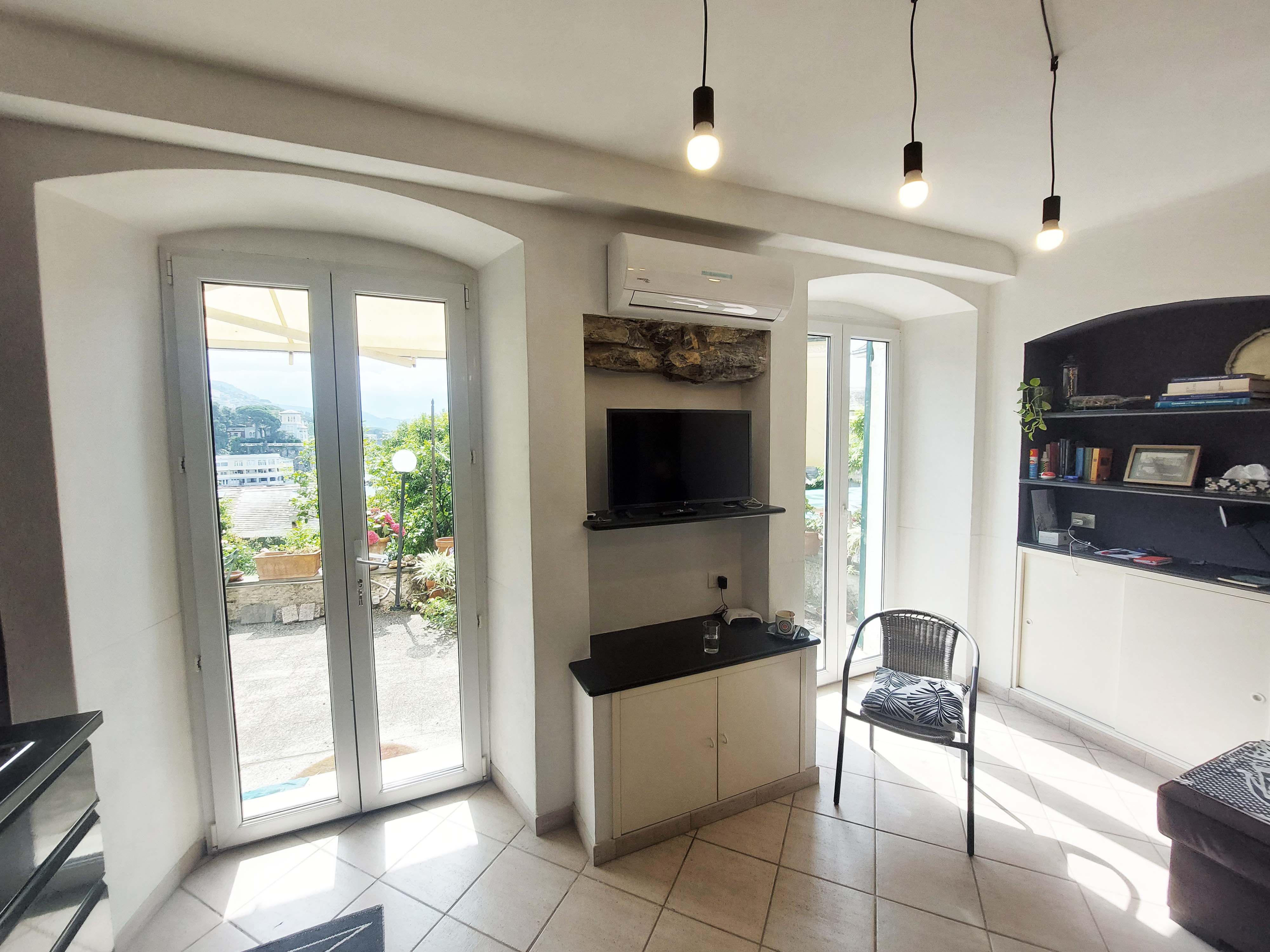 L’appartamento ruota attorno allo splendido terrazzo affacciato sul mare, le finestre incorniciano il panorama, che viene proiettato all’interno della casa.