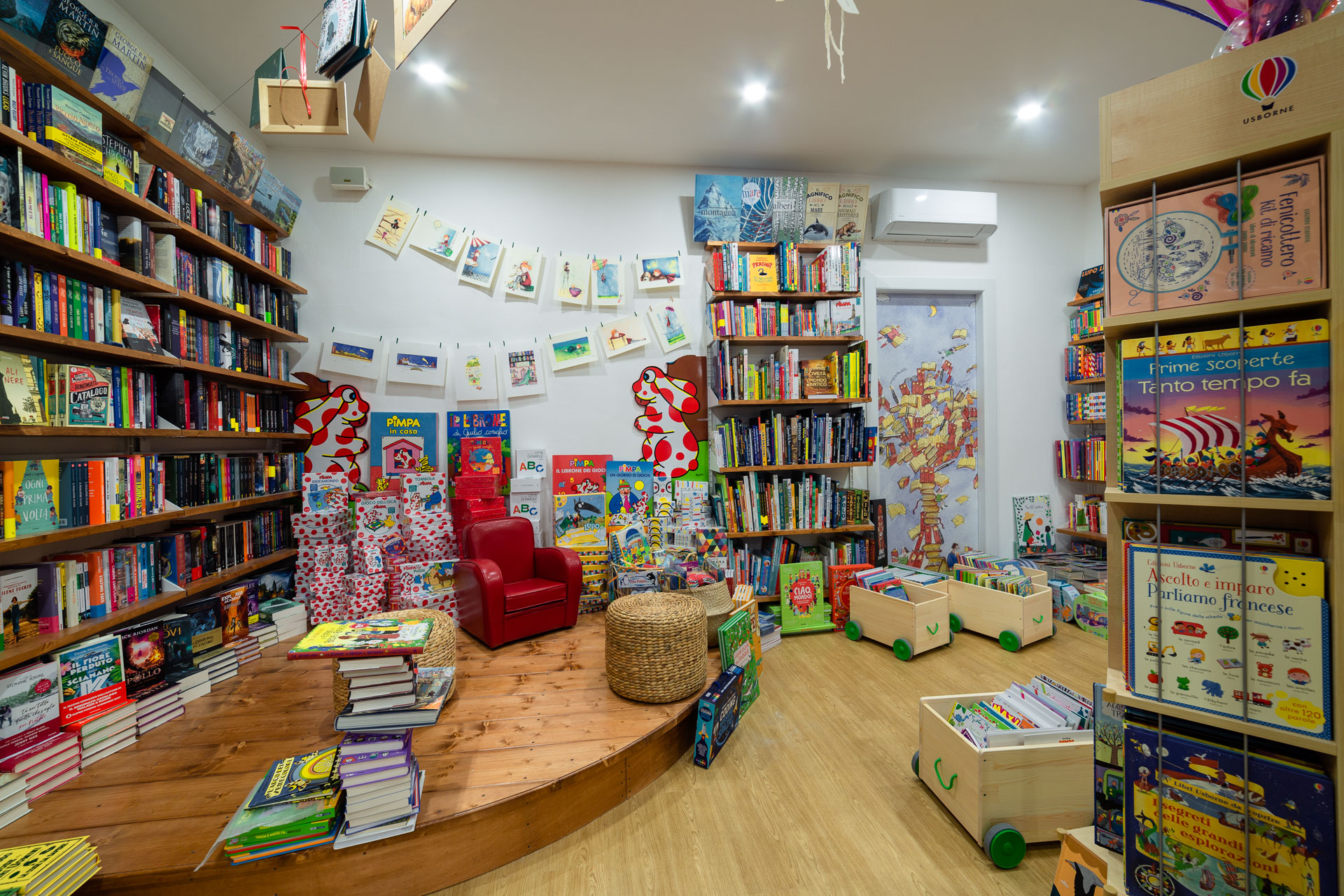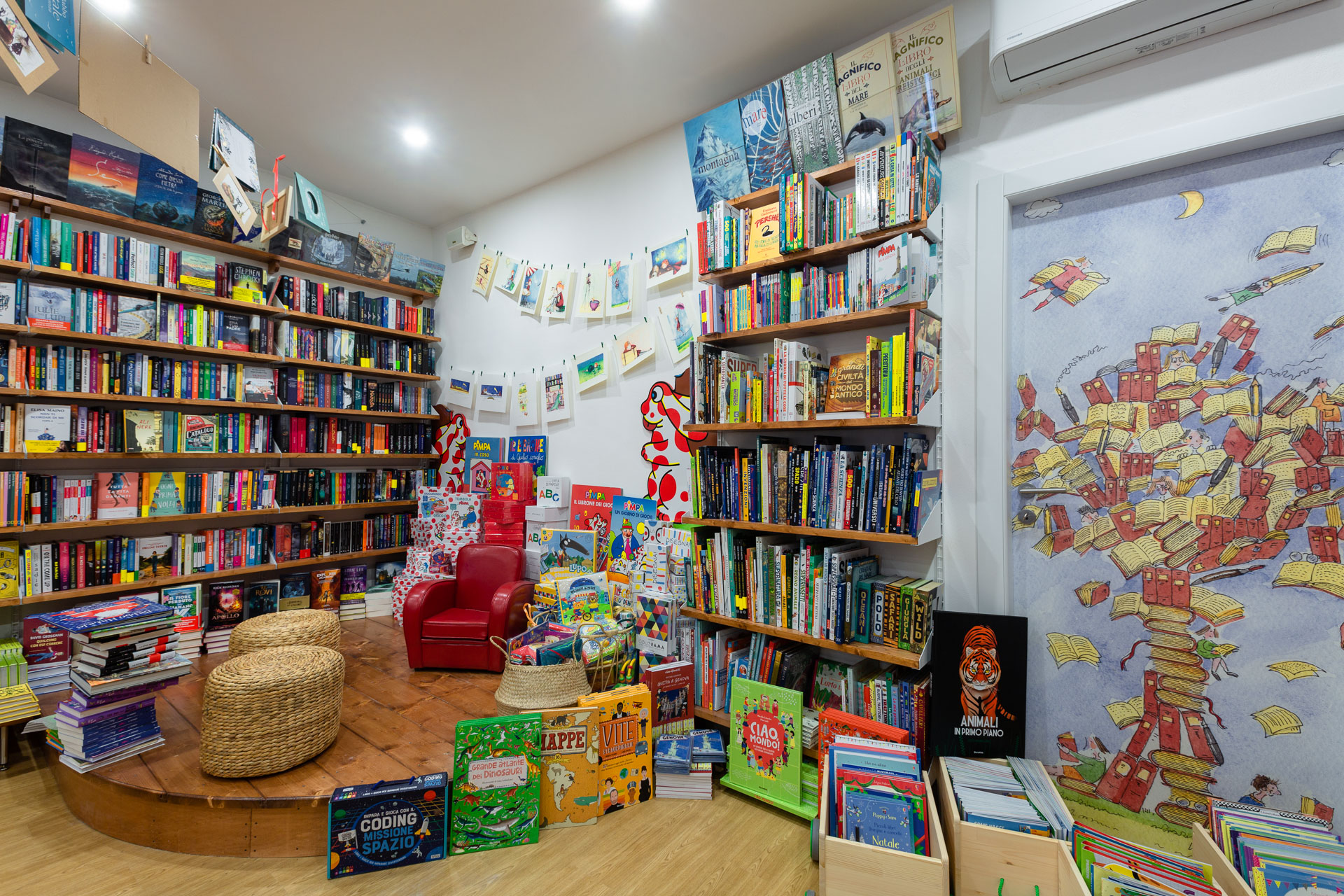 Sono loro che da soli riempono e colorano la libreria, rendendola un ambiente piacevole e divertente, a dimensione di bambino.
