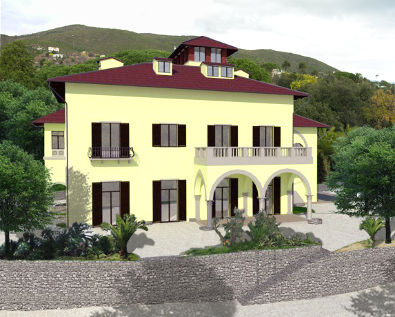 Il progetto prevede il restauro e la riorganizzazione degli ambienti interni, la sistemazione del grande parco e la creazione di una piscina esterna, ai fini della realizzazione di un piccolo resort nel cuore della cittadina della riviera ligure.