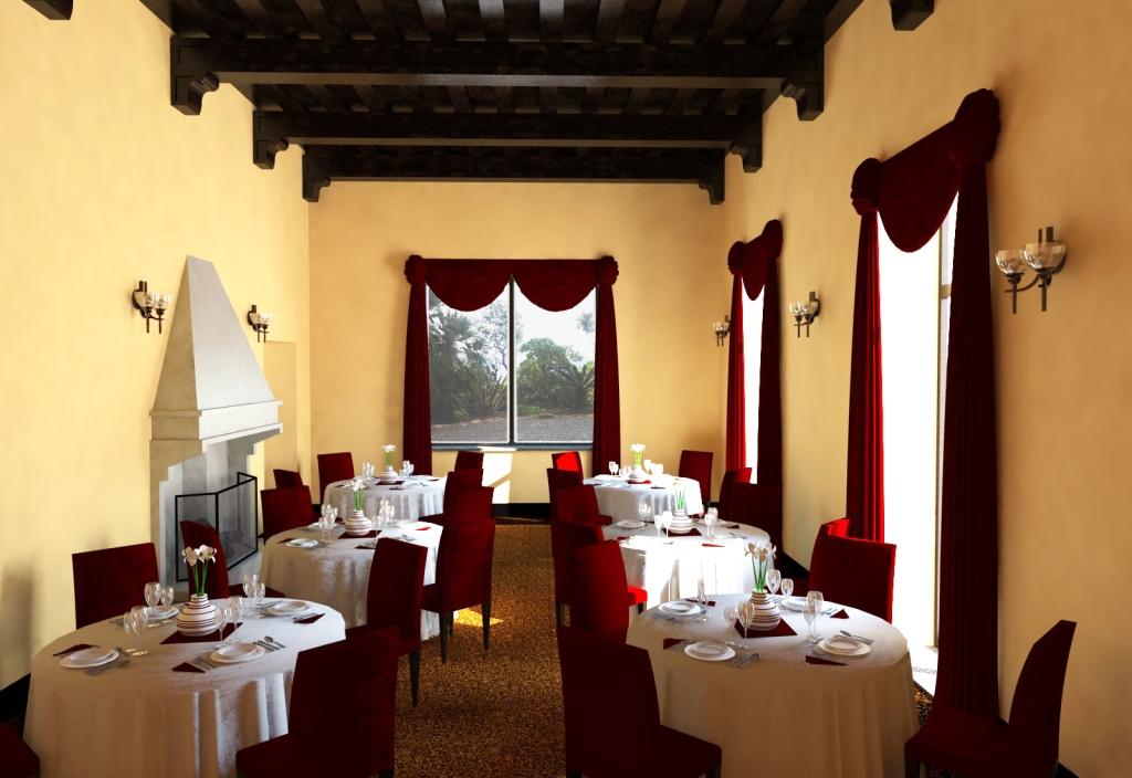 Il piano terra resta spazialmente inalterato, ma organizzato in modo totalmente nuovo: i saloni vengono destinati alle funzioni pubbliche del resort, quale salotti, accoglienza, ristorante e sala congressi.